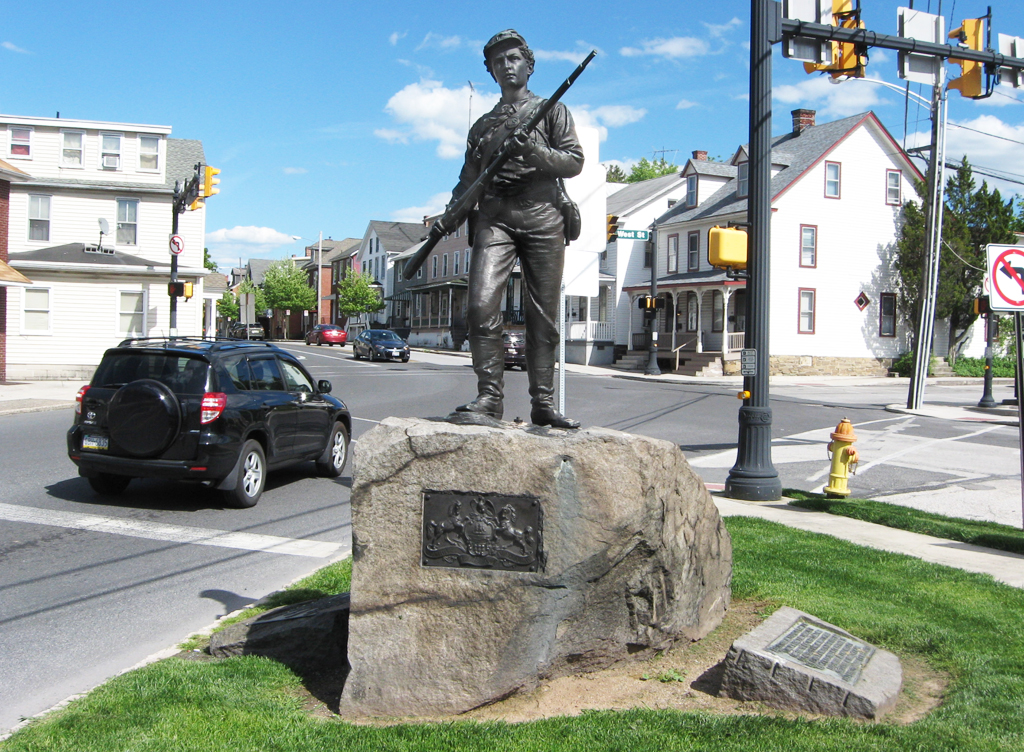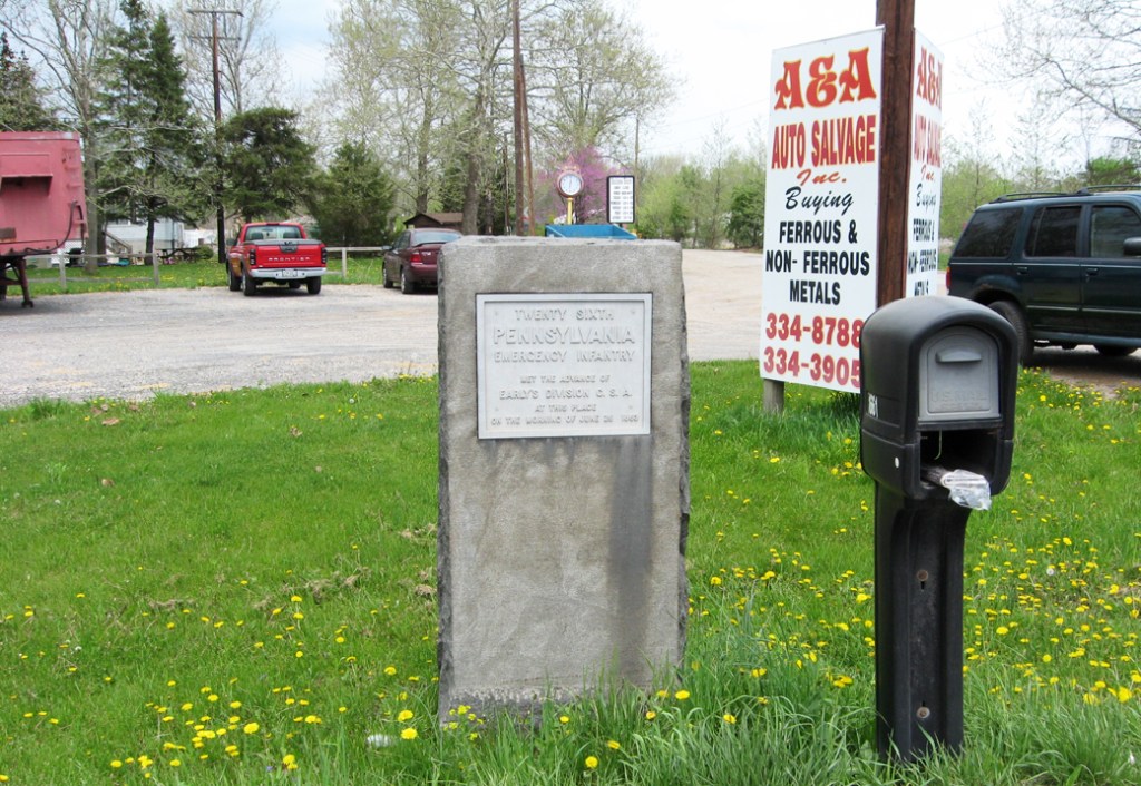 That summer, the war came to Luther Slater as the Army of Northern Virginia marched into Pennsylvania. The state’s governor called for emergency militias to be raised in an effort to slow the Confederate advance. Not one to forgo his duty, Luther Slater volunteered, despite his old wounds. The young Lieutenant, arm still in a sling, was soon at the head of a company of Gettysburg college and seminary students that became part of the 26th Pennsylvania Emergency Militia. On the morning of June 26th, this militia regiment, along with some local farmers mounted as cavalry, stood along the banks of Marsh Creek, just west of Gettysburg. Bearing down on them was a strong force of veteran Confederate infantry, with the horsemen of Elijah White’s 35th Battalion leading the way. The Confederate cavalry “came with barbarian yells and smoking pistols” and easily brushed aside the inexperienced militia, capturing many and routing the rest. Later that same day the militia attempted to regroup north of town, but was again driven off.
