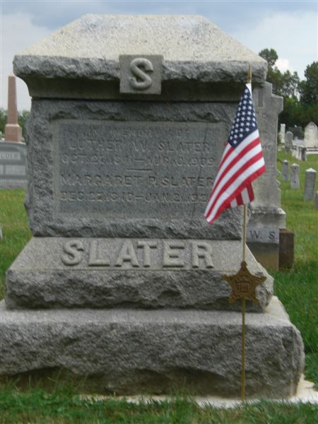 Slater survived his second brush with Elijah White, and remained with the militia for the next month. He was detailed to the signal corps, and according to some sources he also served in the hospital corps as well. In November 1864, he married Mollie, and at the end of the war he and his bride moved back to Lovettsville. From there he had a distinguished career in politics and civil service – first as a constable and postmaster in Loudoun County, then as a 40-year career employee with the Federal government. His greatest contribution was with the Record and Pension Office, where he assisted with the organization of military records following the war. He was also a founder of the Washington, DC chapter of the Military Order of the Loyal Legion of the United States.